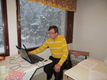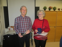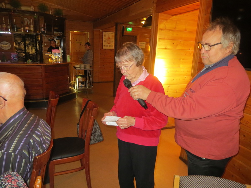 Säde ja Sirkka onnittelemassa Haukiputaan Eläkkeensaajia 40-vuotisjuhlassa 6.8.2009 |  Yhdistyksemme kävi ma. 29,10.-12 Veitsiluodon Eläkkeensaajien vieraana. Vpj. Veikko Pynnönen (kuvassa) toivotti meidät tervetulleeksi, tutustumaan heidän uusituihin kerhotiloihinsa. Tilat sijaitsevat Veitsiluodon Työväen Talossa. Saimme nauttia monipuolisesta ojelmasta, tästä ja kaikesta vieraanvaraisuudesta kovasti kiittäen isäntiämme.